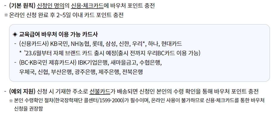 - 사전등록 23년 3월 2일 ~ 20일 : 3월 중으로 카드 바우처 우선 배정 예정.